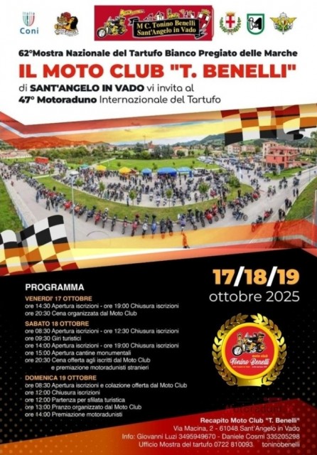 Il raduno si svolge nella suggestiva cornice di Sant'Angelo in Vado, città legata a doppio filo con la Mostra Nazionale del Tartufo Bianco Pregiato. L'evento rappresenta una perfetta fusione tra la passione per le due ruote e l'eccellenza enogastronomica del territorio marchigiano.
