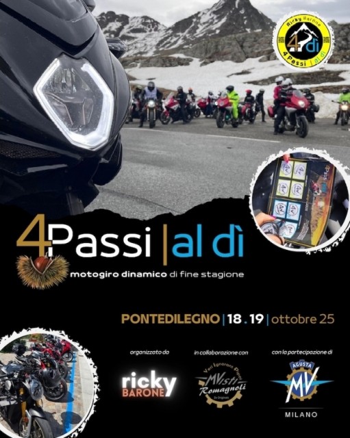 Il "4 Passi al di' 2.1" porta la firma di Ricky Barone, organizzato in stretta collaborazione con gli MVISTI ROMAGNOLI e con la partecipazione speciale di MV AGUSTA Milano. Questa partnership unisce l'esperienza nell'organizzazione di eventi, la passione sincera e il prestigio di un marchio simbolo del motociclismo italiano.