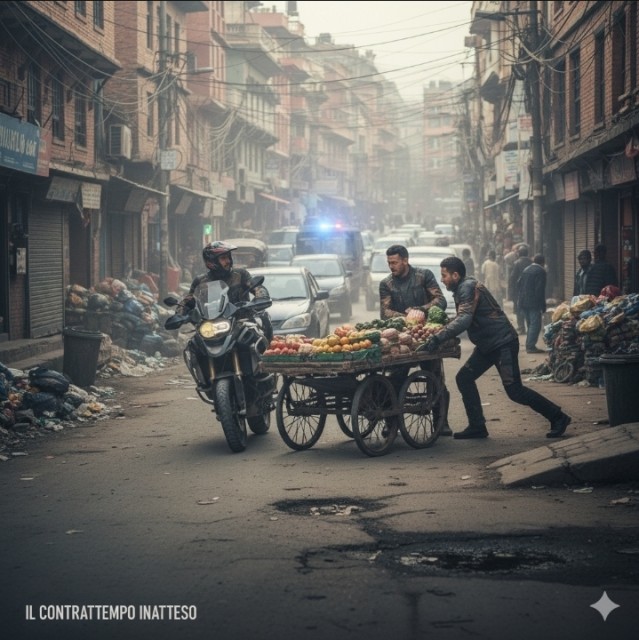 Marco si accostò al marciapiede, spegnendo il motore. «Che succede?» chiese, sollevando la visiera. Luigi si avvicinò a un tassista che urlava in nepalese. «Sembra che ci sia stato un incidente più avanti... o forse un blocco stradale per una protesta politica...»