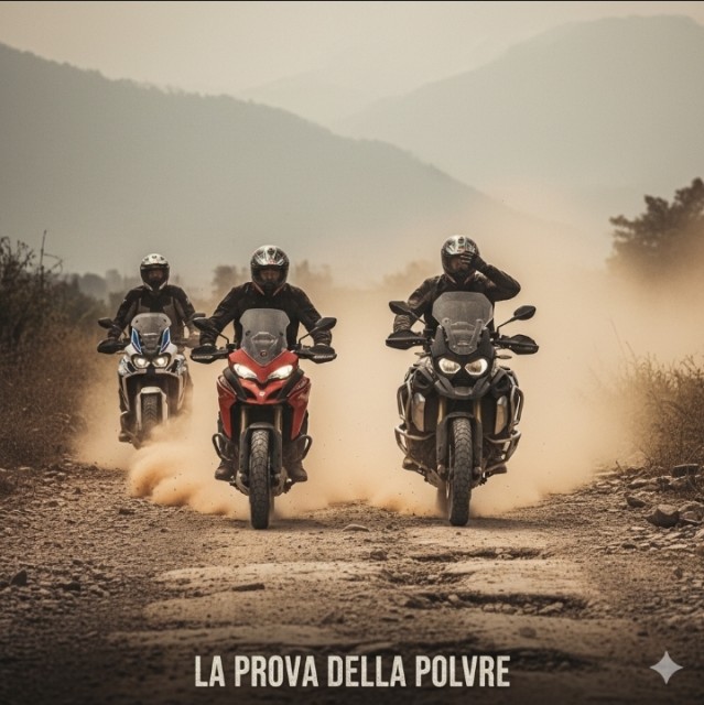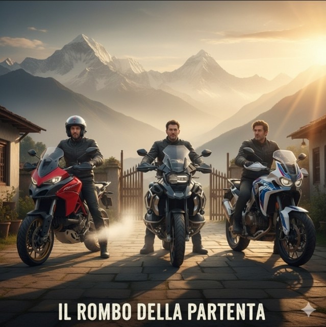 L'ultimo sorso di caffè fu il segnale. Salirono in camera a prendere gli ultimi effetti personali, poi scesero nel cortile dove le loro tre regine a due ruote erano parcheggiate in fila, brillanti nella luce nascente. Marco diede il primo colpo, e il motore Desmosedici Stradale V4 della sua Ducati prese vita con un ruggito profondo e inconfondibile. Un suono che parlava di potenza italiana e chilometri inghiottito. Luigi fece lo stesso, e la sua BMW rispose con un suono gutturale, solido, l'eco di avventure africane e passi alpini. Infine, Gianni accese l'Africa Twin. Il suo rombo era più pacato, affidabile, la promessa di una resistenza inarrestabile. Erano un trio di suoni, un coro meccanico che spazzava via il sonno e annunciava l'inizio della giornata. Si scambiarono un rapido cenno con il capo - l'unica comunicazione necessaria tra vecchi amici che condividono la passione per il viaggio.