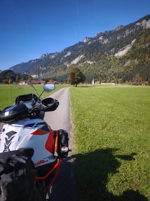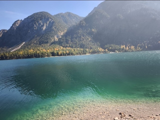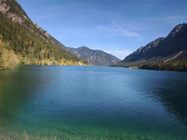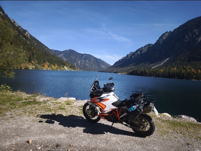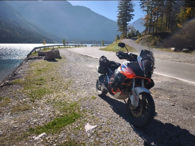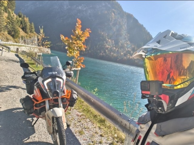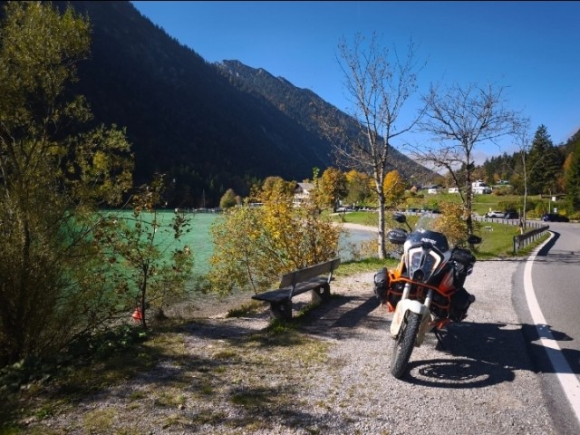 Mimmo imboccò la B2 tedesca, che lo condusse rapidamente in Austria, dove la strada si trasformava nella leggendaria B179 (Fernpassstraße). Questa strada ad alta quota offriva curve ampie e veloci, ideali per il Mostrooo. La prima sosta mozzafiato fu il Lago Blindsee. Le acque del lago, di un turchese innaturale, fungevano da specchio perfetto, moltiplicando la bellezza delle foreste che lo circondavano, tinte di un oro massiccio e fiammante. Superata questa meraviglia, Mimmo raggiunse rapidamente Biberwier, dove i colori si addolcivano in giallo paglierino e ocra lungo i torrenti di montagna.