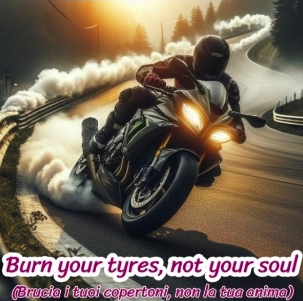 C'è una frase, un mantra per molti di noi che viviamo con due ruote nel cuore, che cattura perfettamente l'essenza della nostra passione: "Burn your tyres, not your soul" (Brucia i tuoi copertoni, non la tua anima).