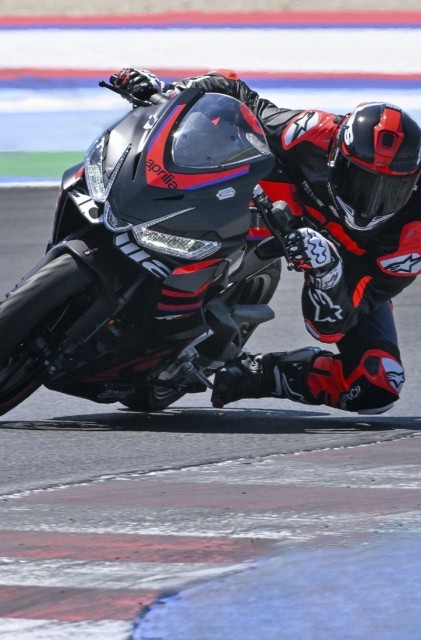 Tra i pregi (gioie) spicca senza dubbio il rapporto peso/potenza, che la rende la più agile del segmento. Il design è considerato un punto di forza assoluto, poiché ricalca fedelmente le linee delle sorelle maggiori RS 660 e RSV4, conferendole un look da "moto grande". Molto apprezzata è anche l'elettronica, considerata la più raffinata e meno invasiva tra le concorrenti di pari cilindrata.