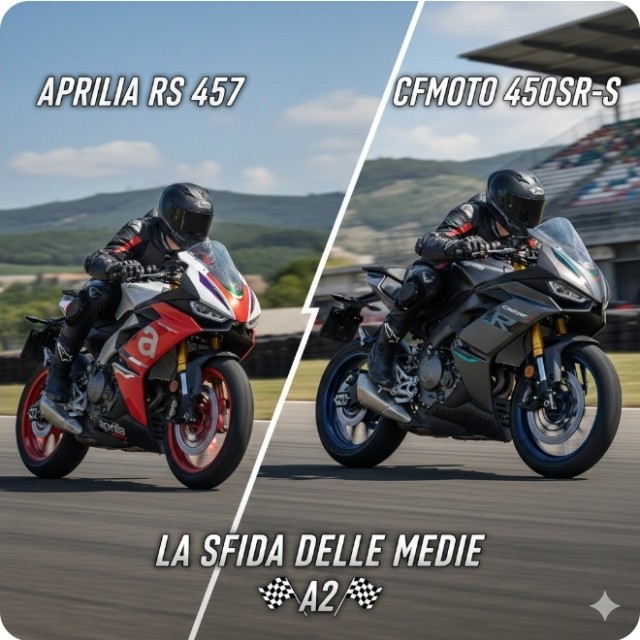 Da un lato abbiamo l'Aprilia RS 457, l’ultima nata della dinastia di Noale che punta tutto sul pedigree racing e sul telaio in alluminio; dall'altro la CFMOTO 450SR-S, l'evoluzione "premium" della sportiva cinese che sfida le gerarchie europee con una dotazione tecnica sorprendente e un design audace.