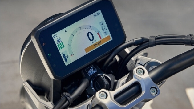 La CB1000F riprende le linee iconiche della sua antenata, caratterizzate da forme sinuose e l'immancabile faro tondo posizionato sopra il classico doppio clacson, un dettaglio estetico che richiama immediatamente lo stile dei tempi d'oro.