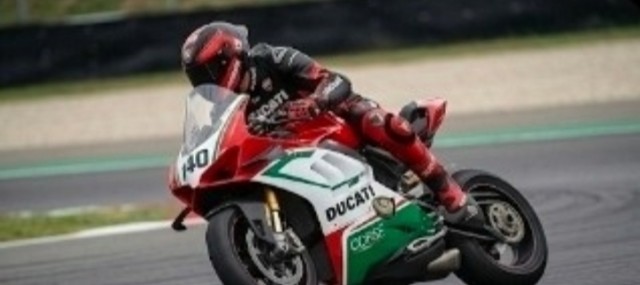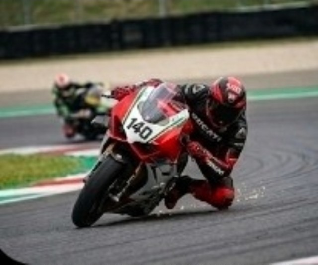 La frenata è un colpo allo stomaco. Mauro sposta il peso, esce con il corpo dalla sella e punta il ginocchio verso l'asfalto della pista. La Panigale scende in piega con una naturalezza disarmante. L'asfalto è così vicino che Mauro potrebbe contare i granelli di ghiaia. Lo "sclack" delle saponette che toccano la pista è un suono rassicurante: è il limite, il punto di equilibrio tra la fisica e il disastro. La moto è inclinata a oltre 50 gradi, le gomme Pirelli lavorano al limite della loro tenuta, deformandosi per offrire ogni millimetro di grip possibile.