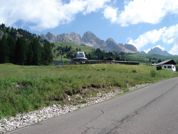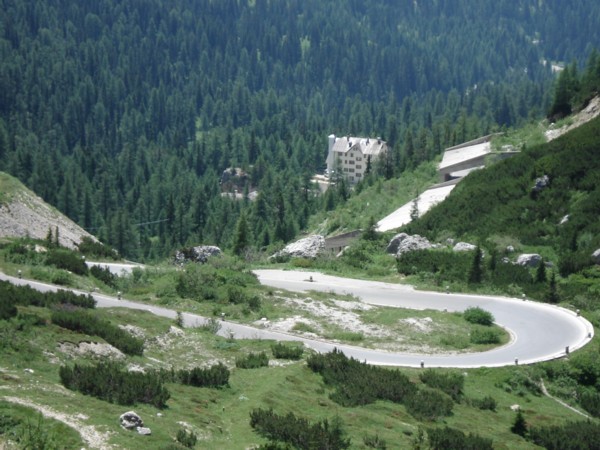 Si riparte un pò più felici, passiamo per Predazzo, Cavalese ed arriviamo a Moena, dove svoltiamo a destra per il Passo di San Pellegrino. Bella strada, con molti Bikers ed anche molti ciclisti.