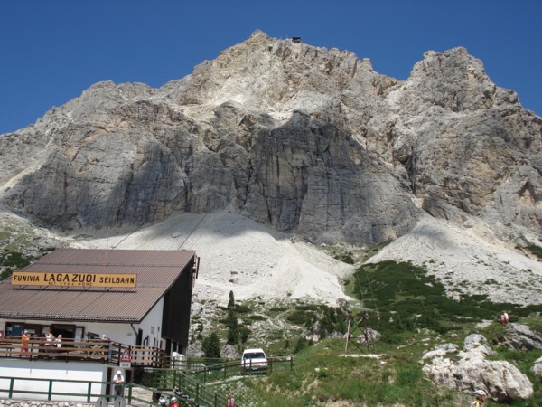 Prendiamo la strada in direzione Arabba e subito incontriamo una vecchia conoscenza del gruppo Casina, l'albergo Sasso di Stria (da noi soprannominato Shining), ricordo di diverse settimane bianche, e di diverse "battaglie" in quota.