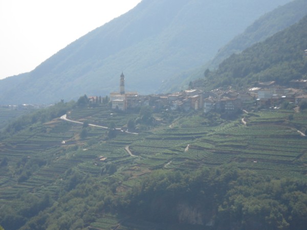 Raggiungiamo Canazei e poi giù per la Valle di fassa e la Valle di Fiemme. Ci dirigiamo nuovamente verso Trento, imboccando però l'altro lato della Valle di Cembra. Strada in discesa molto bella, abbastanza veloce e, fortunatamente, all'ombra, con una temperatura decisamente piacevole. Scendendo ci fermiamo a fotografare il Paese di Cembra attorniato da tutto quel ben di Dio dei vigneti che producono ottimo vino bianco, ed anche rosso, di montagna.