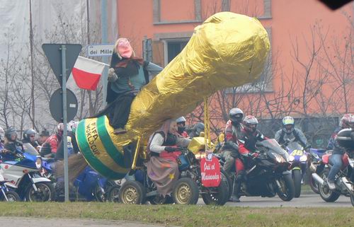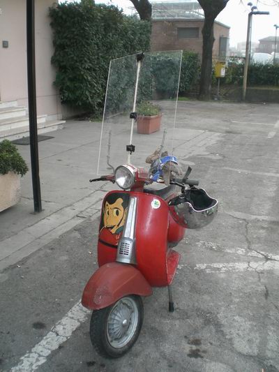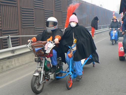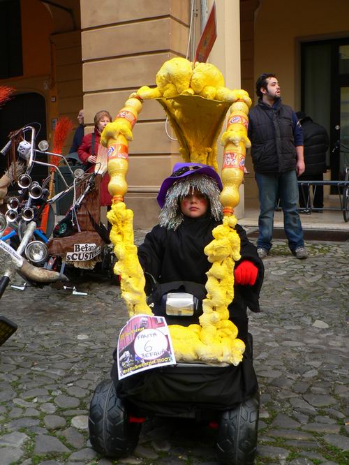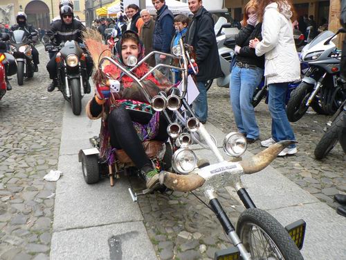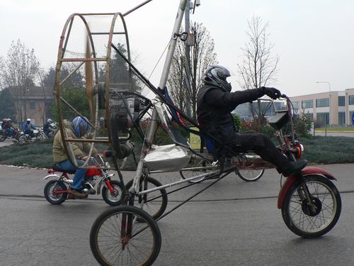La foto del primo classificato non ce l'ho in quanto la mia collega, fotografa ufficiale, non me l'ha data ( ...) Si trattava di una spece di bici elettrica ma in effetti meritavano di più quelli di Massenzatico del secondo posto. Il titolare del mezzo era comunque lo stesso di questo strano " motoventola"