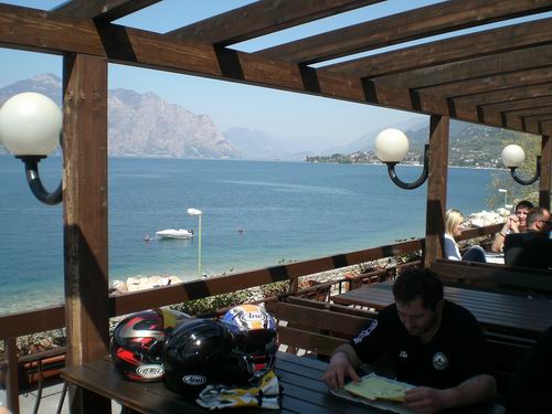 Dale parti di Torre del Benaco troviamo un bellissimo ristorantino gestito da una simpatica olandese. Tra l'altro pieno di soli motociclisti. Ottimo il pesce, e per una volta riusciamo anche a non farci spennare !
