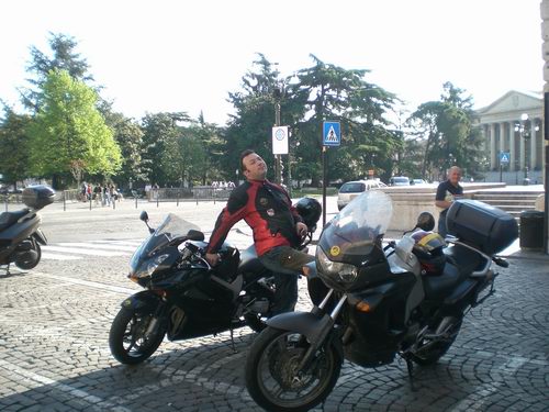 Partenza dall'Autostrada con il solo Lomba, dopo che dei restanti non Vi è traccia...Autostrada a bomba ed arrivo a Verona dove raccattiamo i partecipanti alla festa del sabato per Ilo.