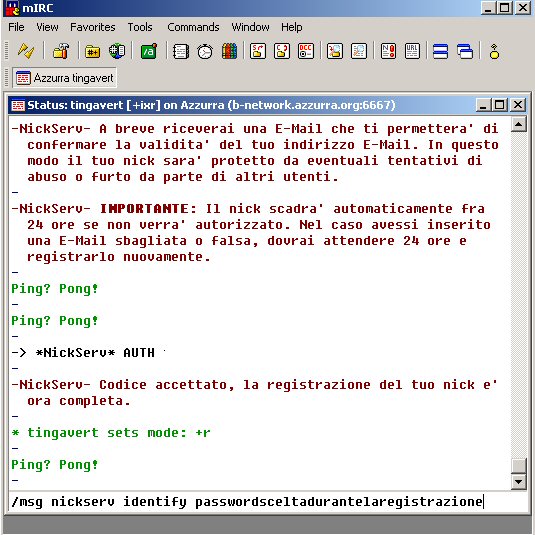 Ecco abbiamo registrato il nick su mirc