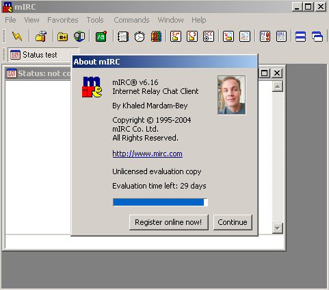 Nota: Mirc è un programma in prova per 30 giorni trascorsi i quali continua a funzionare regolarmente ma l'utente dovrebbe acquistare una regolare licenza.
