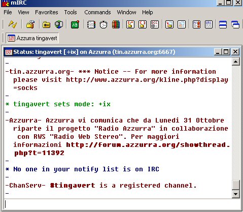 se state utilizzando mirc fornito da noi entrerete direttamente sul canale , chiudete quindi solo la finestra del canale e rimarrete sullo status