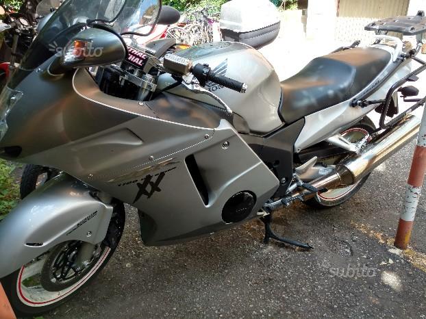 Note aggiuntive: Ultimo modello prodotto. 153 CV. 3 proprietari precedenti. Revisionata a luglio 2019. Modello bicolore: argento/grigio. Manubrio Renthal Fat Bar conico street-touring. Piastra manubrio CNC Top Yokes UK Tubi freni in treccia aero rivestiti nero. Tubo frizione in treccia aero. Gomme: post. 90%, ant 70%. Freni 70% Trasmissione finale nuova 90% (catena+corona+pignone) Batteria nuova Filtro aria appena cambiato K&N Candele nuove 3 cupolini (standard + Double Boubble blu + touring GIVI) Porta bauletto GIVI Portaborse SW-Motech a sgancio rapido per GIVI. Nessun'altra modifica a parte quelle descritte. Tutti i ricambi originali in dotazione. Praticamente perfetta. Spese passaggio Proprietà a carico dell'acquirente. Disponibili a parte, 2 borse GIVI mai usate e un bauletto grande GIVI in tinta Prezzo non trattabile. Chiedi un prestito per acquistare la tua moto Importo 3500 https://www.subito.it/moto-e-scooter/honda-cbr1100-xx-superblackbird-2005-km-35-000-bologna-308153218.htm |