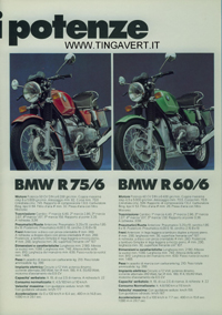 catalogo moto BMW della serie R 90s, r90-6, r75-6 ed r60-6