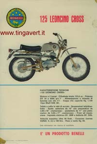 Depliant pubblicitario con informazioni tecniche su Benelli 125 Leoncino Cross