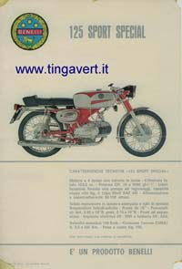 Depliant pubblicitario con informazioni tecniche su Benelli 125 Sport Special  |