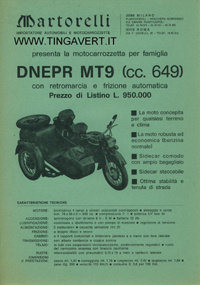 Pubblicità del sidecar Dnepr modello MT9 importato dalla Martinelli