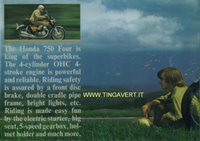 Depliant dlla Honda modello CB 750 Four, in inglese