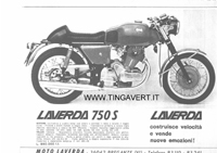 Pubblicità con dati tecnici Moto Laverda modello 750s. Gentilmente concessa da
