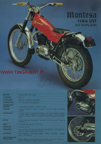 Pubblicità con foto e scheda tecnica della Montesa modello Cota 247 Ulf Karlson