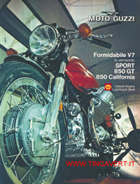Pubblicità della Moto Guzzi del modello "V7" in versione Sport, 850 GT e 850 California. Gentilmente concessa da