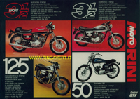 Pubblicità della Moto Morini con modelli 50, 125 e 350 cc