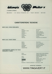 Scheda tecnica di alcuni modelli della Olimpic Motor's