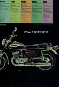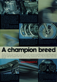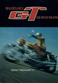 depliant con caratteristihe tecniche delle moto Suzuki serie GT