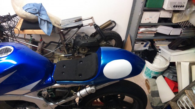 ci farò anche un piccolo 'paraserbatoio' e uno schienalino per il codone, ora devo cominciare a colorare le carene, appena magari il tempo si degna di fare bello, ormai sono due settimane che qui piove |