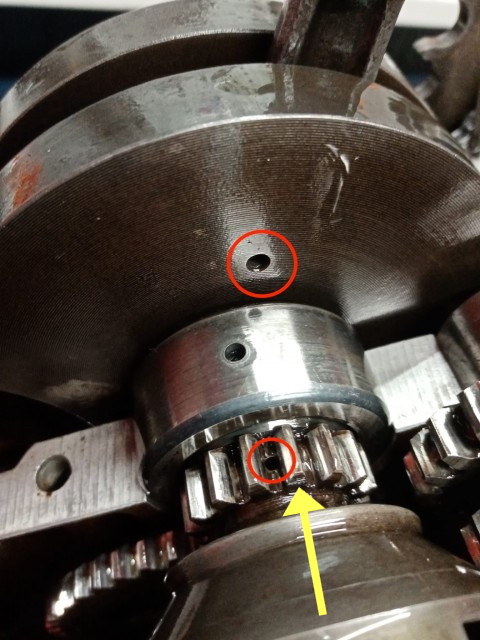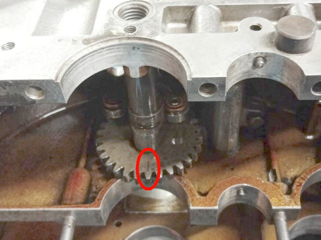 Se sull'ingranaggio dell'albero motore c'è una tacca di riferimento deve essere sulla faccia frontale (zona indicata dalla freccia gialla)
