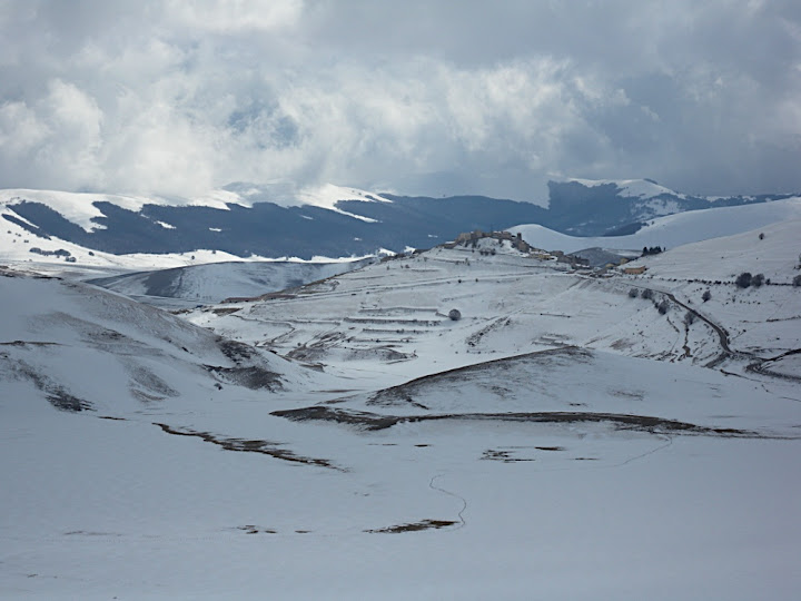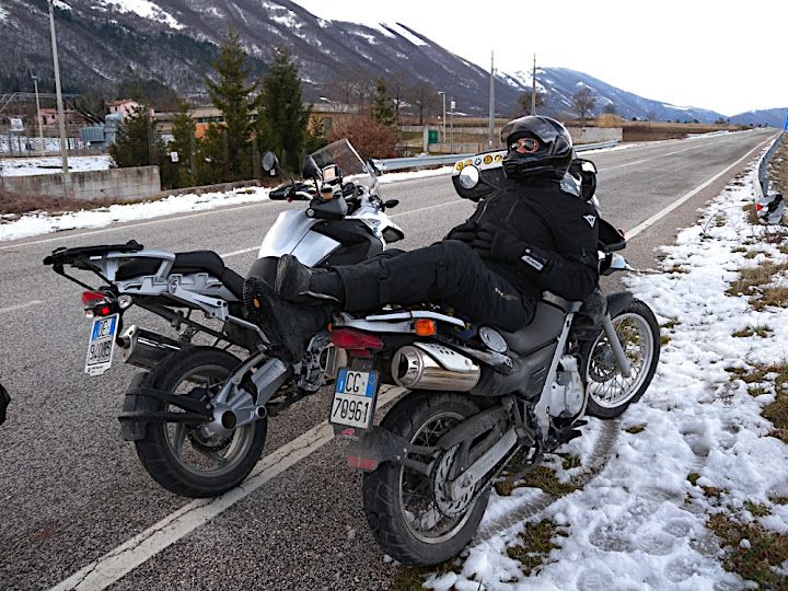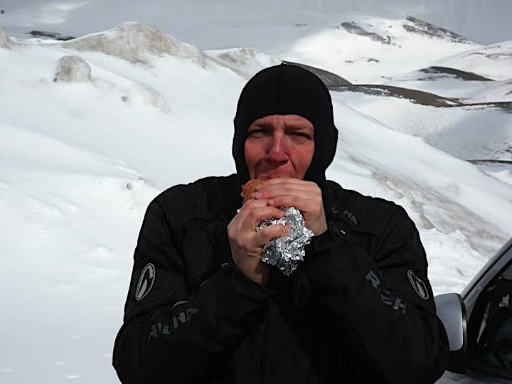 . Risaliamo e la strada peggiora: giunti in cima si cominciano a vedere mucchi di neve anche in mezzo alla strada