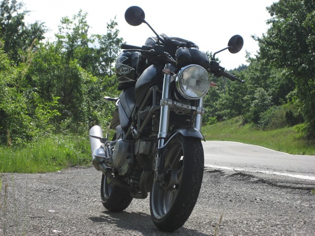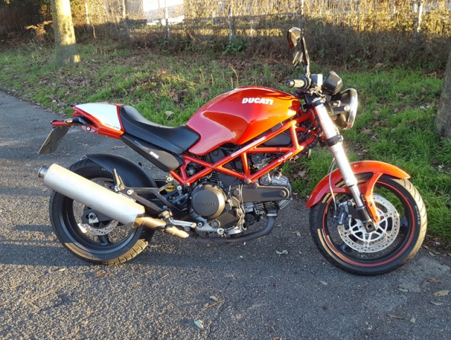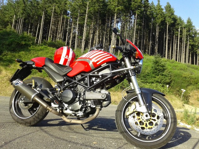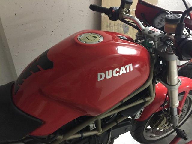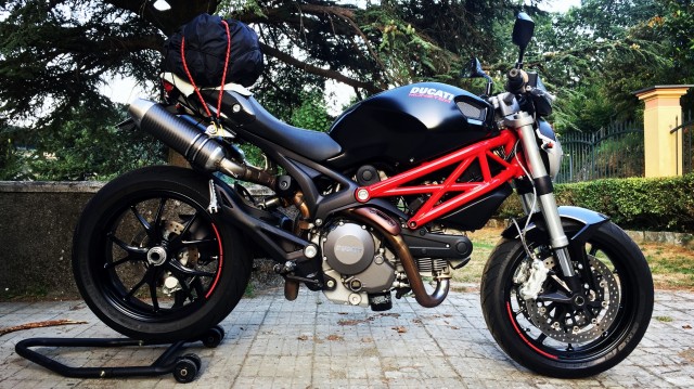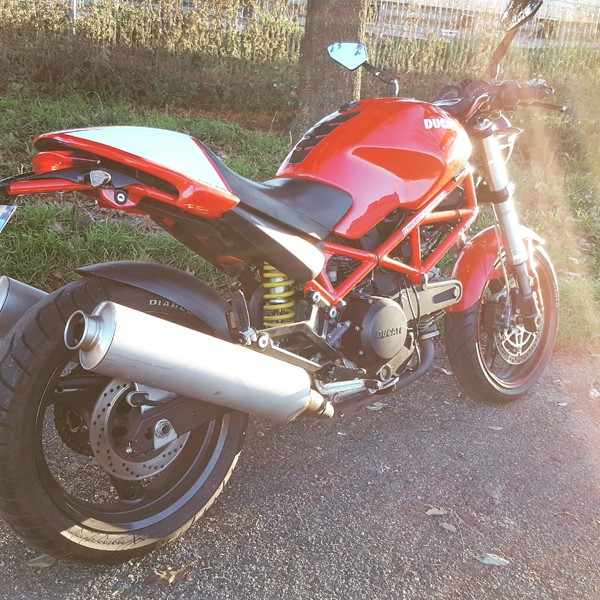 Ha qualche piccola modifica come i semi manubri (che sostituirò appena possibile con il manubrio originale), il doppio disco, le forcelle della 748 e i terminali GPR omologati, oltre a piccolezze estetiche come il puntale e il cupolino che ho prontamente rimosso