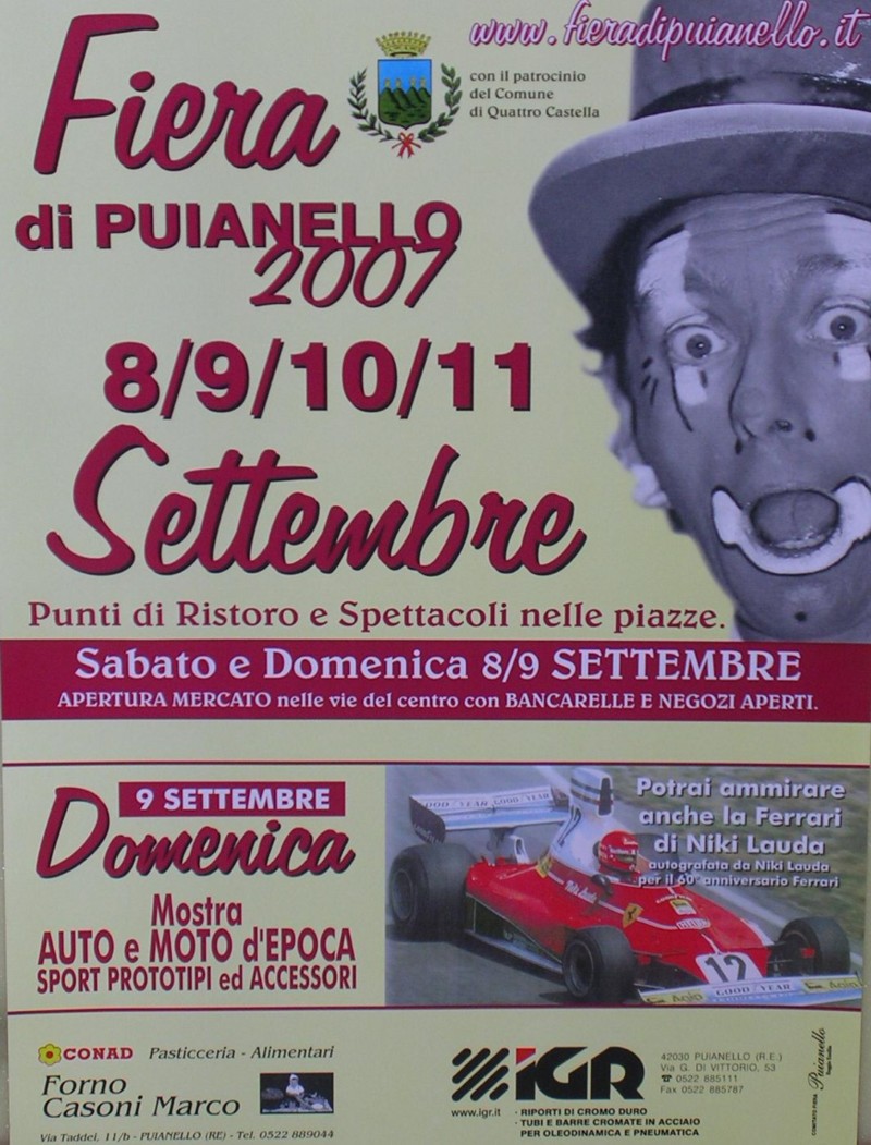 Oggetto: Motogiro e Pranzo c/o fiera di Puianello (RE) - sabato 8 set