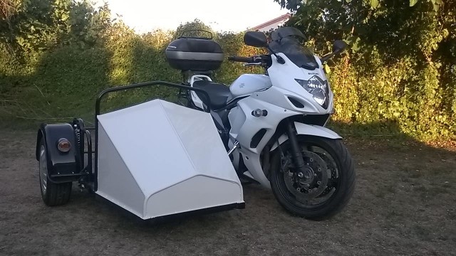 Ecco una foto della mia GSX 1250 FA con il nuovo accessorio da viaggio montato... il tutto ovviamente completamente reversibile, ci vogliono circa 45 minuti per ritornare alla configurazione a due ruote.