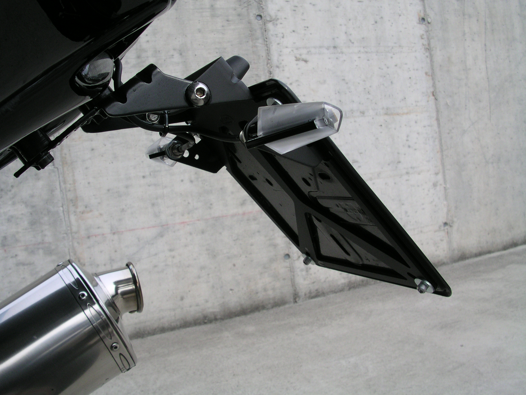 Ho fatto dei tagli sui lati del portatarga dove si fissa la targa, e poi con forza l'ho abbassato.