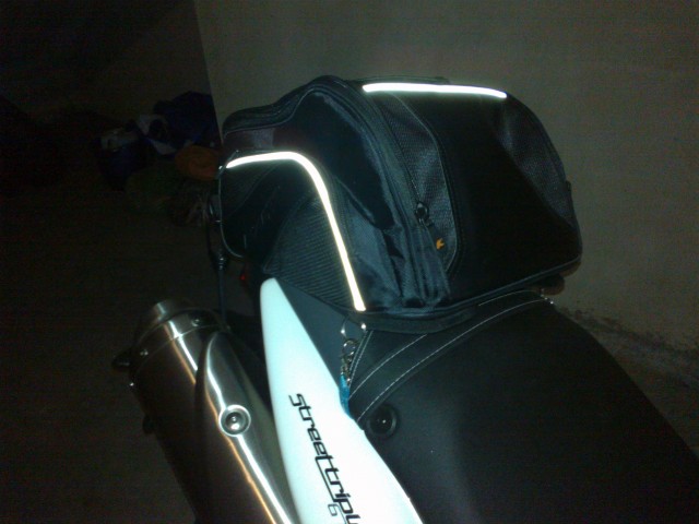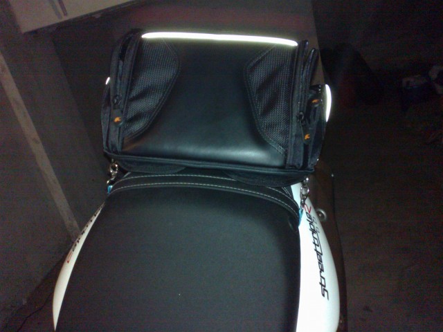 Per la parte più vicina al "pilota", la seconda cinghia l'ho fatta passare attraverso un paio di anelli presenti sulla borsa.