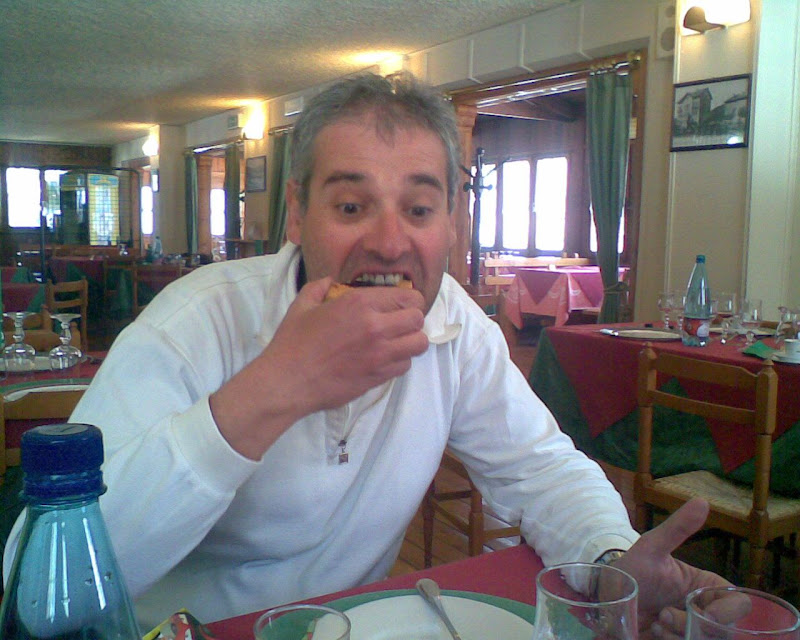 Ebbene, dopo aver finito il cestino del pane di altri motociclisti seduti al tavolo vicino al nostro (che gentilmente ci hanno invitato ad un loro raduno...a proposito chi s'è preso il volantino?) come anche per l'insalata rimasta, dopo un pò ci sentiamo dire " mi spiace il pane è finito"