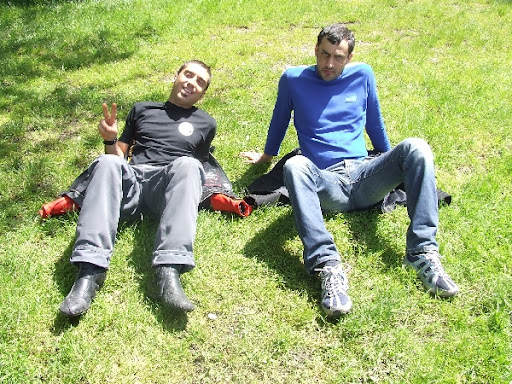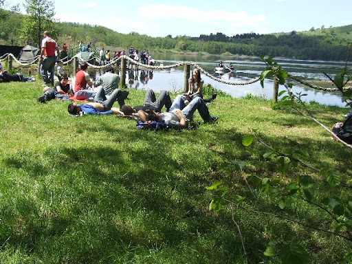 Dopo aver pranzato, arriva l'ora della pennicchella e senza teli da mare ci stendiamo sul verde prato sistemandoci alla meglio (Cappuccio usa le scarpe come cuscino