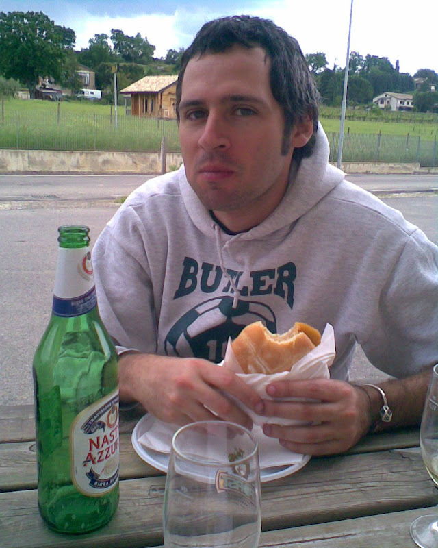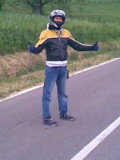 (marco pensava mi prendesse..) ci suggerisce che magari è l'ora di fare una sosta.. cosa che avviene in una pompa di benzina con una harley e una bici.