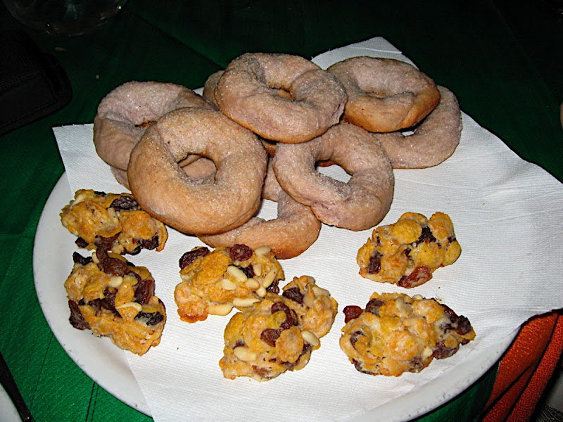 Si decide di mettersi dentro, il che crea non poche difficoltà al ristorante che invece aveva preparato fuori. Ma siccome c'erano Gigante e R_I_O che smaniavano, il gestore è sceso a miti consigli. Ha sloggiato una coppia (lei mica male..., lui non l'ho neanche guardato, avrebbe potuto avere sei braccia...) ed ha attaccato un pò di tavoli.