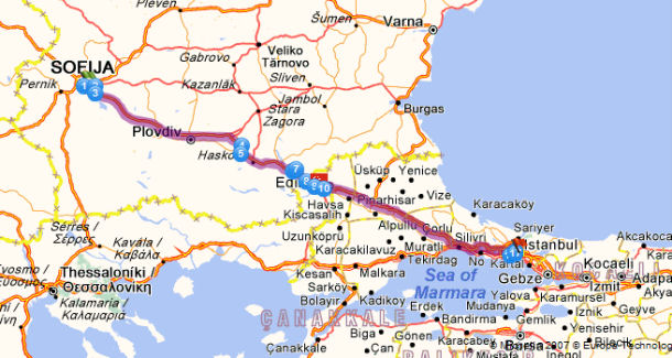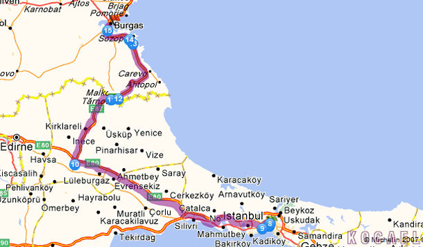 Sveglia ore 7. Mattina giretto ad Istanbul, fino al pranzo. Primissimo pomeriggio, intorno alle 14, partenza per Burgas. Passo tranquillo, per quanto possibile si segue la costa (il percorso sotto riportato è indicativo). Pernottamento in camping.