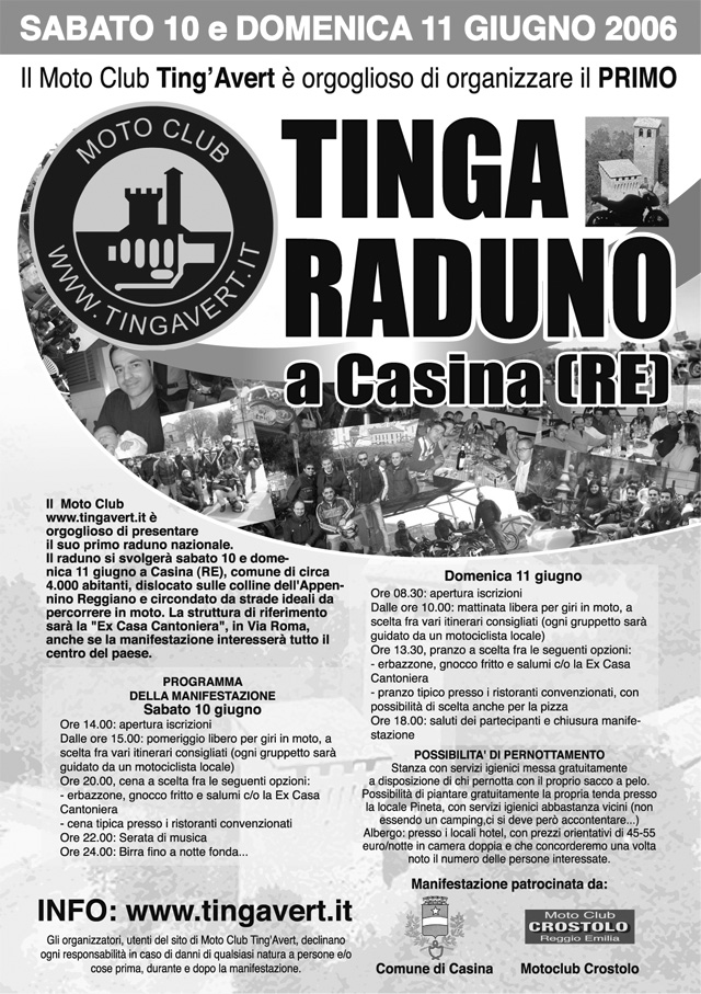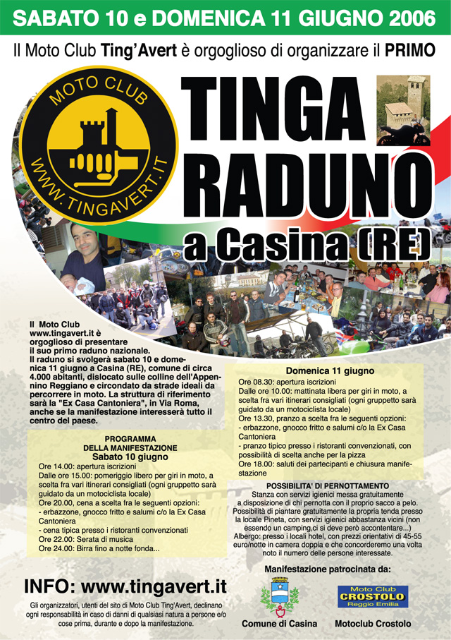 Il raduno si svolgerà sabato 10 e domenica 11 giugno a Casina (RE), comune di circa 4.000 abitanti, dislocato sulle colline dell'Appennino Reggiano e circondato da strade ideali da percorrere in moto. La struttura di riferimento sarà la "Ex Casa Cantoniera", in Via Roma, anche se la manifestazione interesserà tutto il centro de paese.