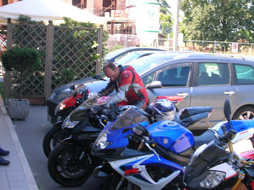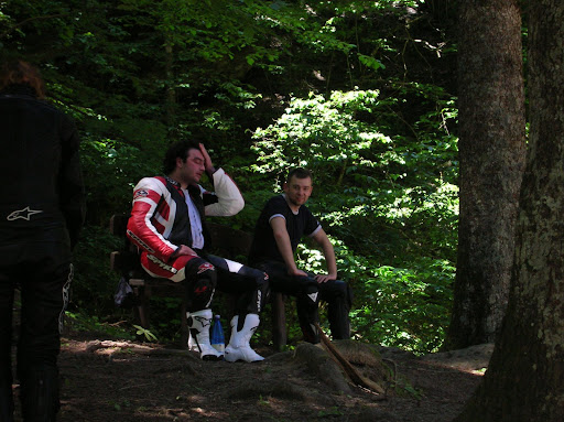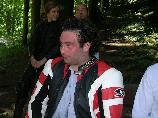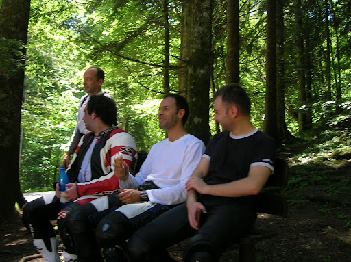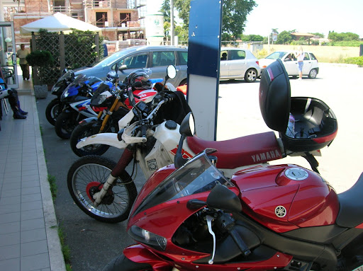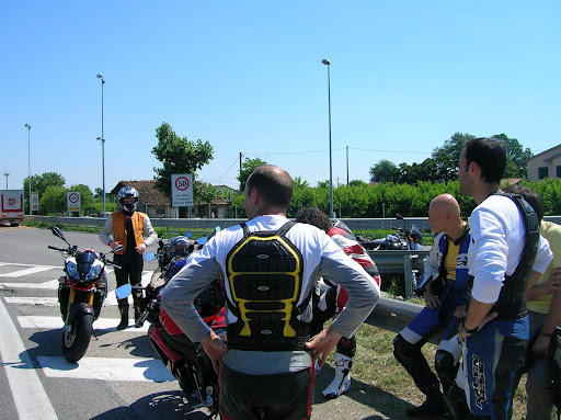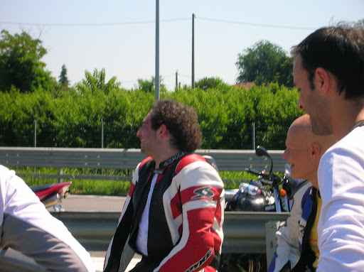 Durante il percorso sosta al passaggio a livello fantasma, abbassato senza treno, con 35 gradi e le moto che sputavano fuoco dal motore, ci stendiamo nel praticello a fianco, tolti guanti e caschi, quanto le sbarre si alzano a tradimento con dietro una fila di macchien imbestialite........