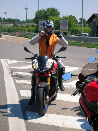 Cambio moto con Albert per un test del bicilindrico direzione Raticosa. Divertente la fattoria da guidare, non ci ho capito una mazza di come si sta in moto, un po a disagio per l'avantreno un po più molleggiato della mia, con sensazioni un po diverse, ma per quanto riguarda il motore è un spettacolo, dopo 250 chilometri du un 4 cilindri, alla prima uscita di curva in seconda ho aperto un po grezzo come faccio con la mia, spero nessuno abbia visto i miei pantaloni rigonfiarsi