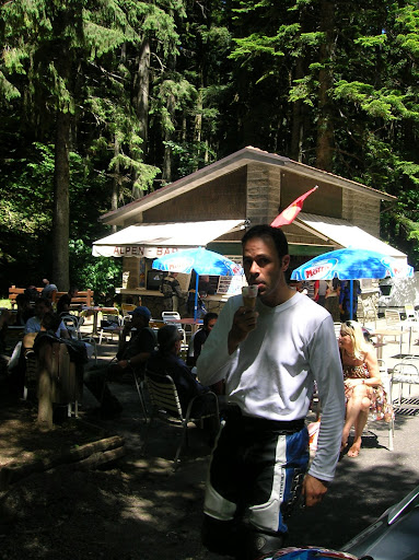 Arrivo al passo della Raticosa, e sosta gelatini e caffettini, con T-rex alle prese con i "pappataci" volanti che sterminava a colpi di bottiglia, precisissimo come un orologiaio svizzero