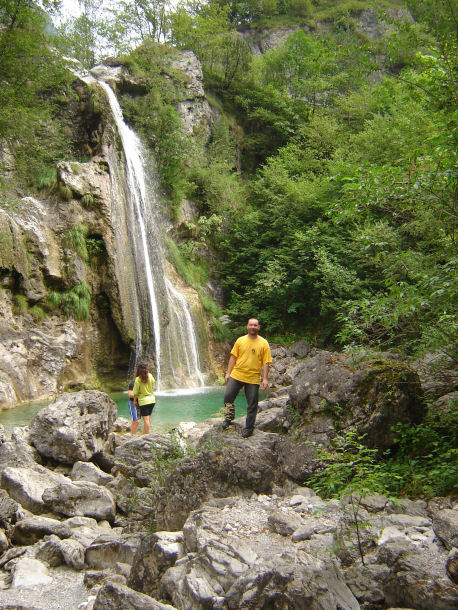 Il mio raduno è iniziato Sabato mattina. Avrei voluto salire già da Venerdì sera, ma avendo finito tardi di lavorare ho dovuto rimandare la partenza. Sono uscito di casa intorno alle 9, per incontrare Stefano (bluetiger) e sua moglie Marzia intorno alle 10:15 sulla sponda orientale del Garda, a Pai. Da lì abbiamo proseguito lungo la Gardesana fino a Riva, per poi salire verso il lago di Ledro lungo la Val d’Ampola, dove ci siamo concessi una sosta per ammirare questa splendida cascata, pochi km prima di Storo: