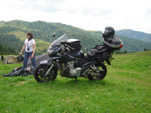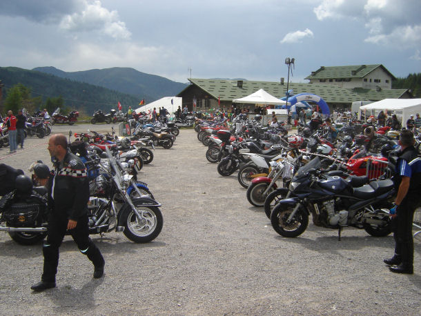 Abbiamo poi proseguito fino a Bagolino, e da lì attraverso la Val di Caffaro siamo saliti al passo Croce Domini dal versante orientale. Raggiunta la sede del raduno a Bazena (due km oltre il passo), ci siamo iscritti, abbiamo piantato le tende e abbiamo pranzato. Il raduno è molto carino, tranquillo "il giusto", ma molto ben organizzato e frequentato da motociclisti Italiani e stranieri su moto di ogni tipo.